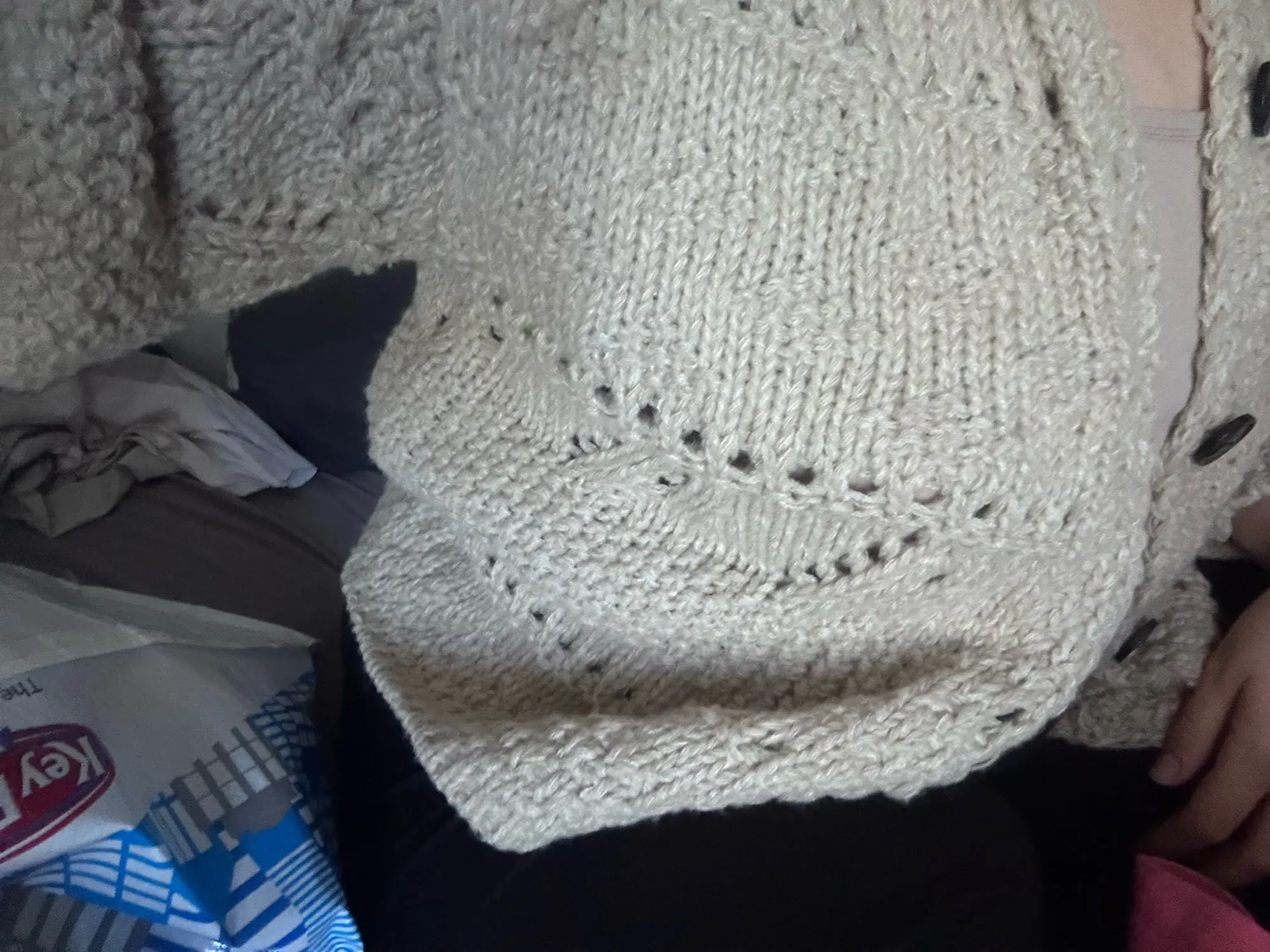 💬 Fit Note – Cardigan en maille épaisse pointelle