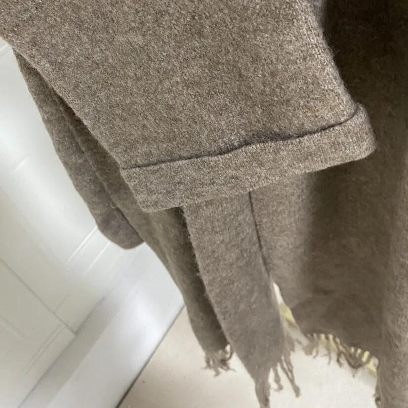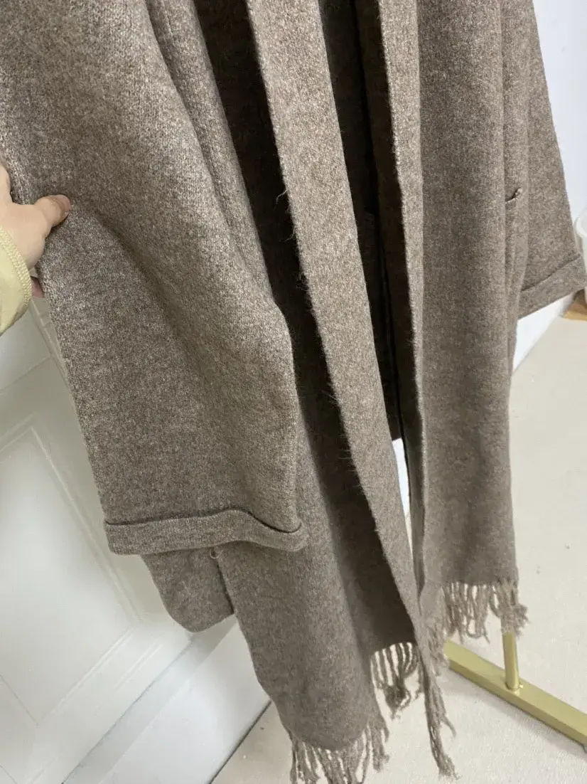 Imaginez-vous enveloppée dans un manteau court tricoté à la texture douce et chaleureuse, sublimé par une écharpe assortie intégrée qui apporte instantanément une allure chic et sophistiquée. Sa coupe oversize décontractée, ses épaules tombantes et ses manches larges créent un look moderne, tendance et ultra confortable.