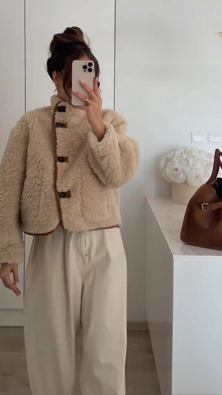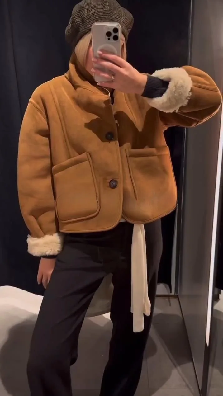 Cette veste incarne l’équilibre parfait entre chaleur maîtrisée, féminité naturelle et style contemporain.